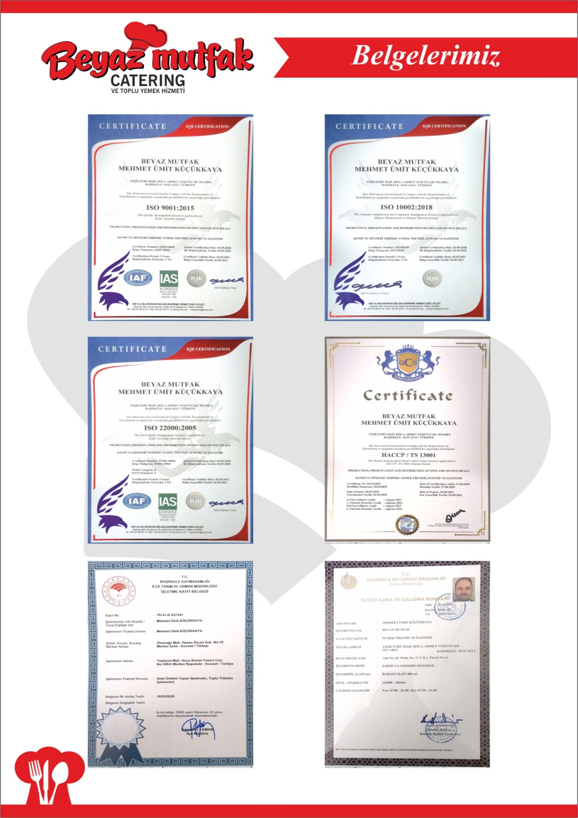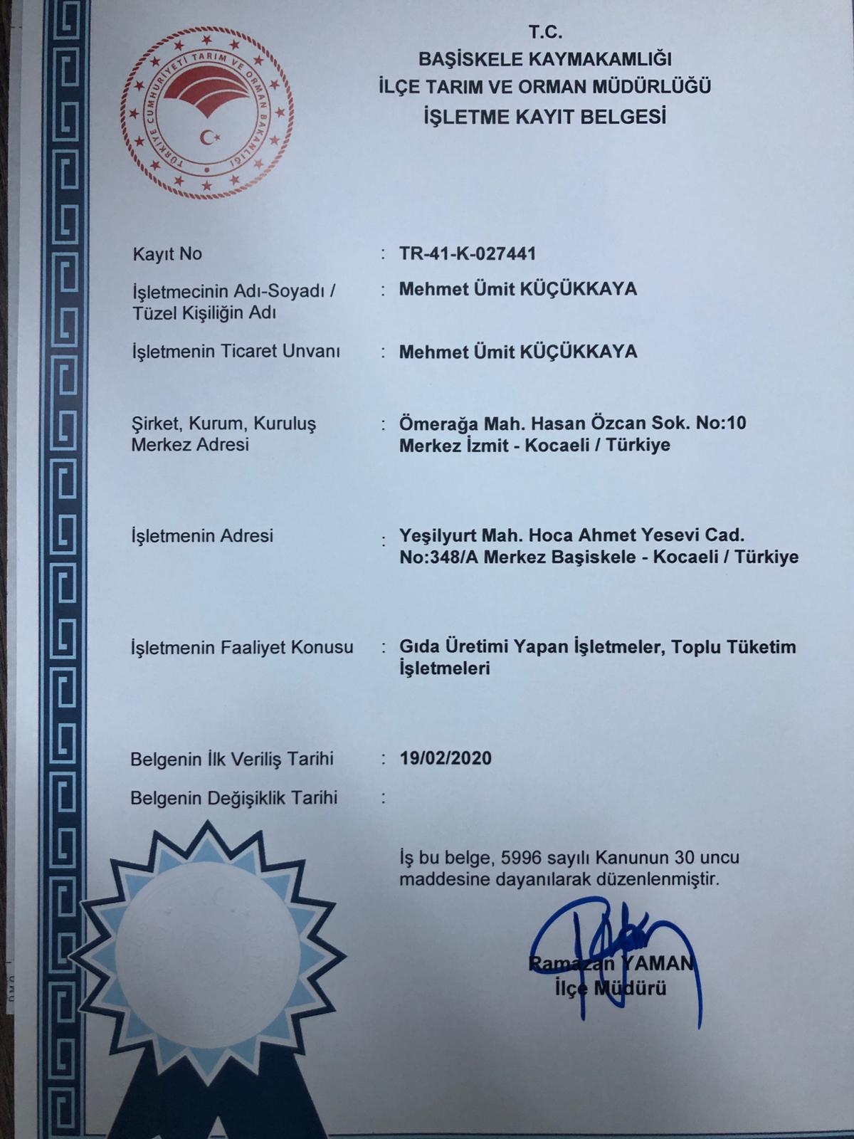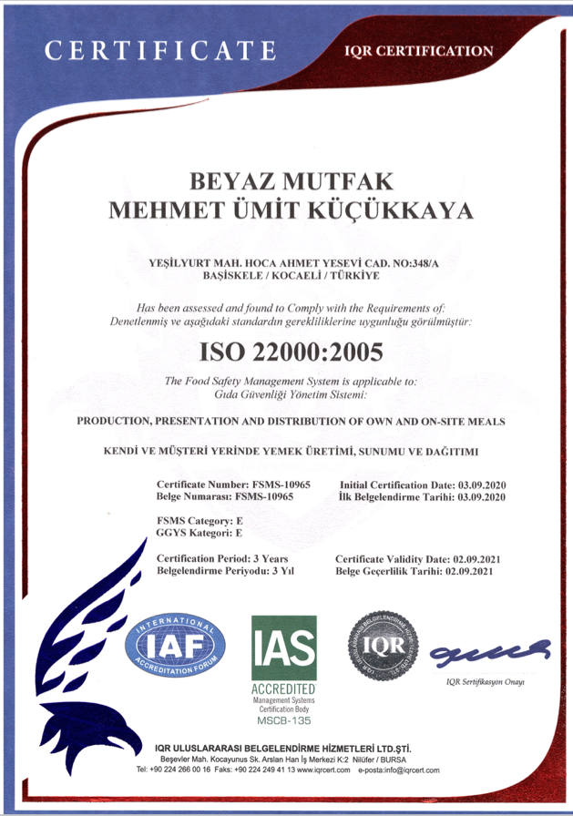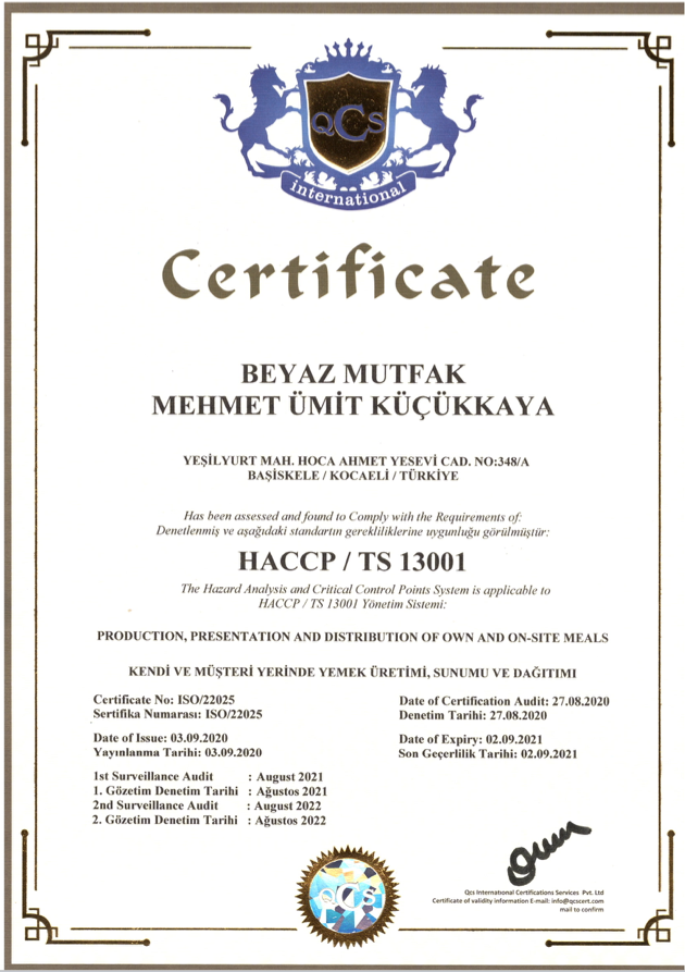 Üretim tesisi mutfağımızı günün istediğiniz saati denetime açık tutmak ve şirketinizle yemek anlaşmasını yapmadan önce mutfağımızı denetlemeniz bizim en büyük arzumuz olacaktır. Şirketimiz bakanlık onaylı üretim izni ruhsatı, resmi belediye izin ruhsatı, ilaçlama belgeleri, işlediğimiz etlerin kesim belgesi ve tüm tedarikçilerin yasal üretim izni belgelerini istediğiniz an firmanızla paylaşmayı da bir görev bilmektedir.