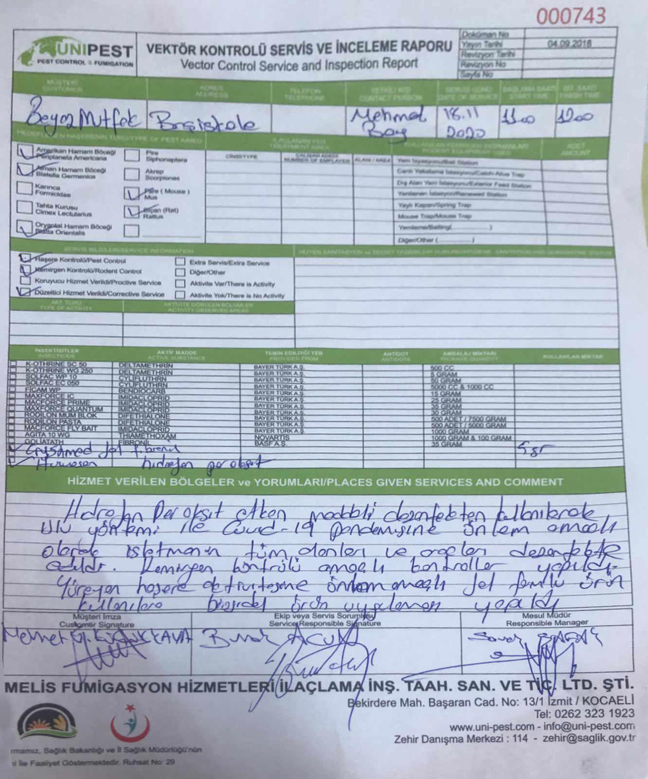 VEKTÖR KONTROLÜ SERVİS VE İNCELEME RAPORU